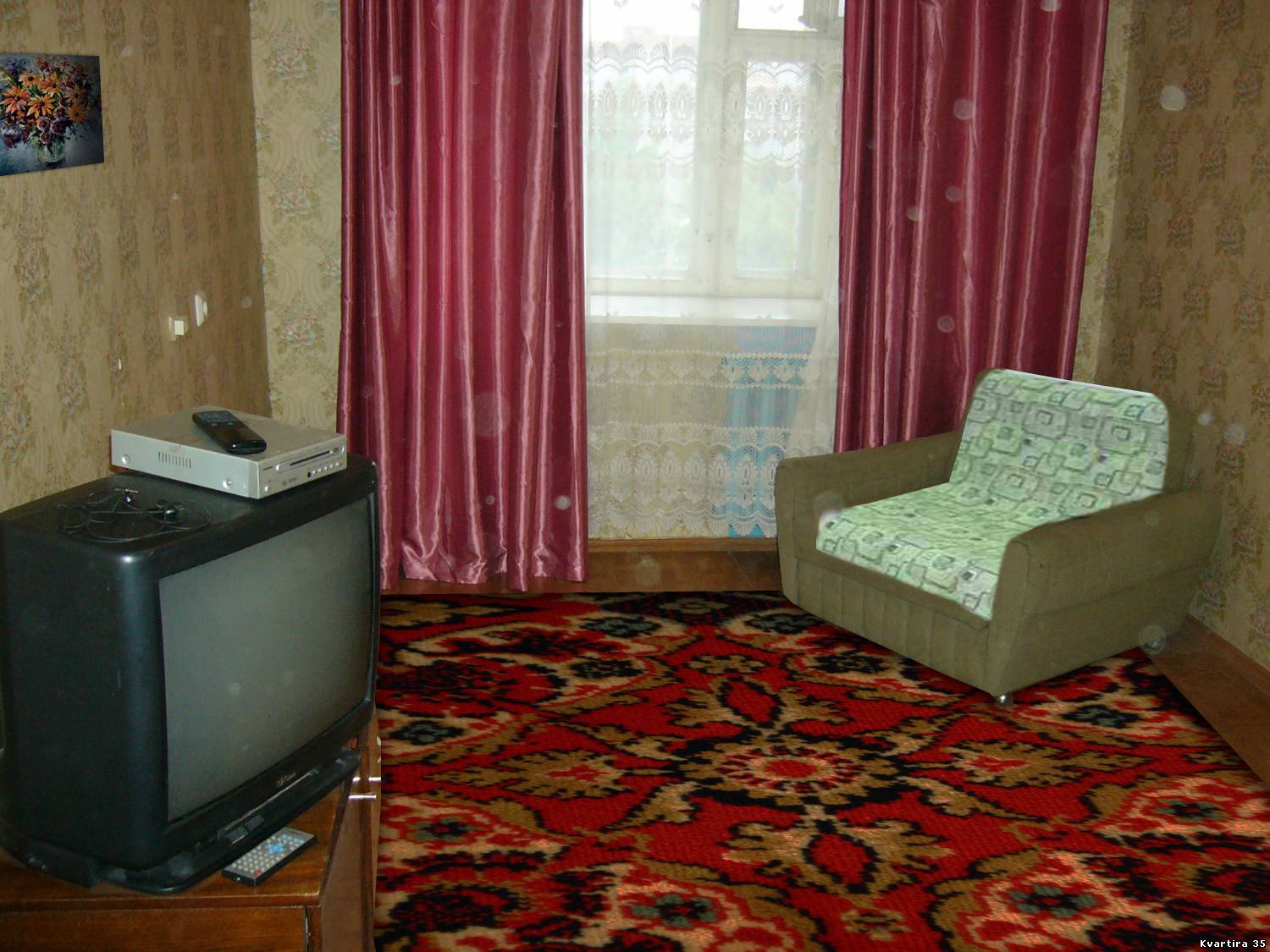 Гостиная-спальня: двухспальная кровать + мягкая мебель: 2+2, телевизор (кабельное ТВ), DVD.В квартире также имеются: утюг,гладильная доска.